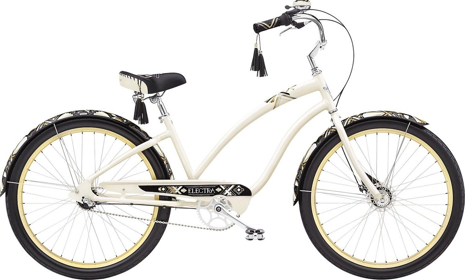 Перламутровая рама, украшенная сложными геометрическими элементами цвета металлик, характерными для стиля ар-деко, делает Zelda 3i настоящим произведением искусства. Каждый элемент этого велосипеда продуман до мелочей, чтобы создать неповторимый образ, вдохновленный сверкающей роскошью прошлого века.