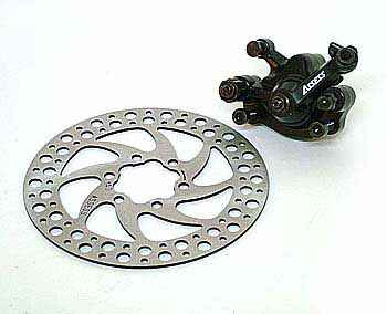 Принцип работы тормозов велосипеда. V-brake тормоза обеспечивают торможение путем зажатия колодками ободов велосипеда в месте специальных тормозных дорожек (проточки), дисковые тормоза тормозят путем зажатия колодками специального тормозного диска (ротора), расположенного у втулки колеса. |