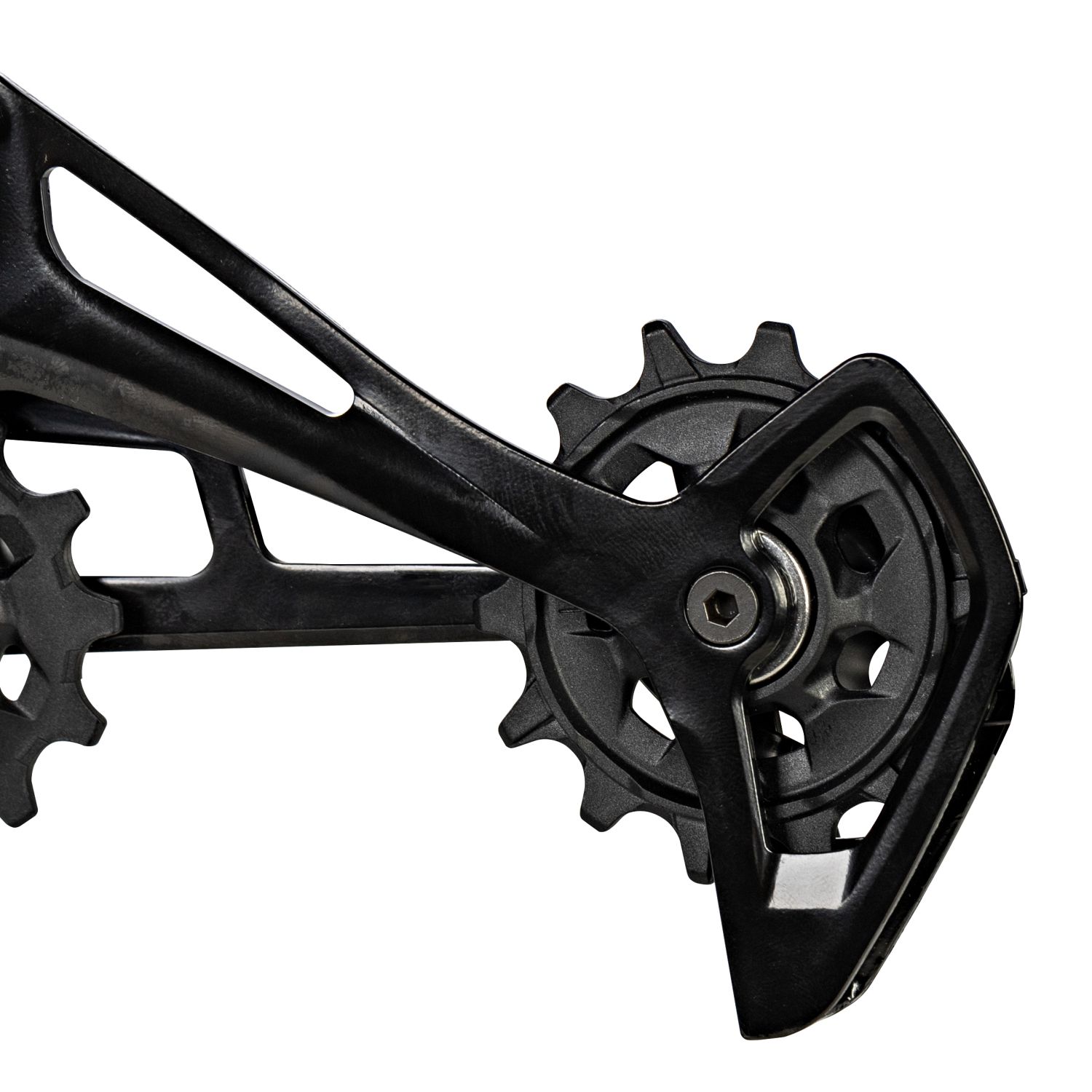 Увеличенный нижний ролик X-SYNC™ с 14 зубьями легко и чётко работает с кассетами 10-50Т или 11-50Т, обеспечивая быстрое и плавное переключение.
