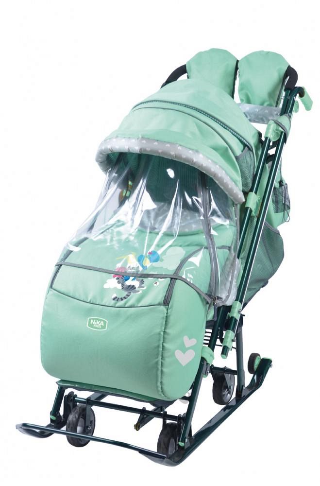 • съемный прозрачный тент от ветра и дождя с двумя молниями, крепится к чехлу коляски на пуговицу