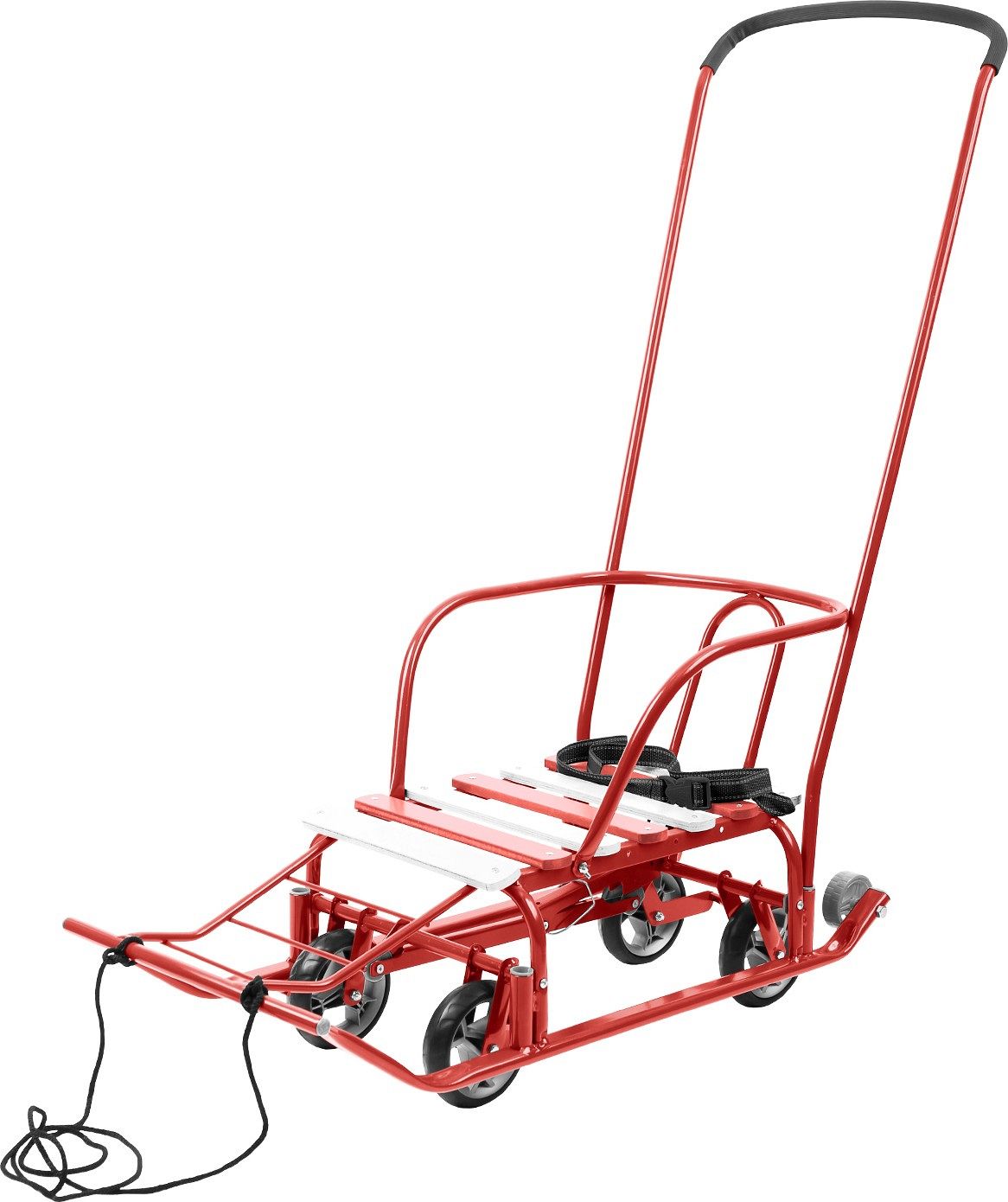 Для безопасности предусмотрен ремень, который надёжно фиксирует ребёнка на месте. Колёса на полозьях делают транспортировку санок удобной и лёгкой. Грузоподъёмность до 25 кг позволяет использовать санки для детей разного возраста, создавая комфортные и безопасные условия для катания.