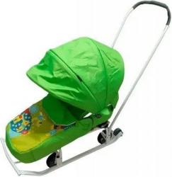 Перекидная ручка позволяет вам наблюдать за малышом "лицом к маме" или везти санки "лицом вперед". Санки выполнены из прочного сварного каркаса и сиденья из реек. На чехле и козырьке имеются вставки из светоотражающей ткани для безопасного передвижения в темное время суток.