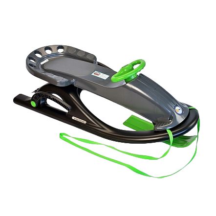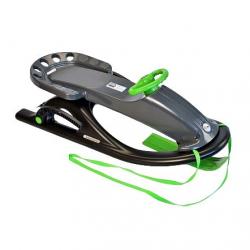 Снизу расположены металлические полозья, которые улучшают скольжение и защищают снегокат от повреждений.