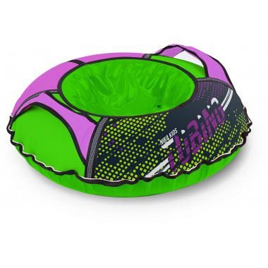 Диаметр тюбинга в накачанном виде составляет 100 см, этот размер позволяет кататься на нём детям ростом до 170 см. Тюбинг выдерживает вес до 120 кг.