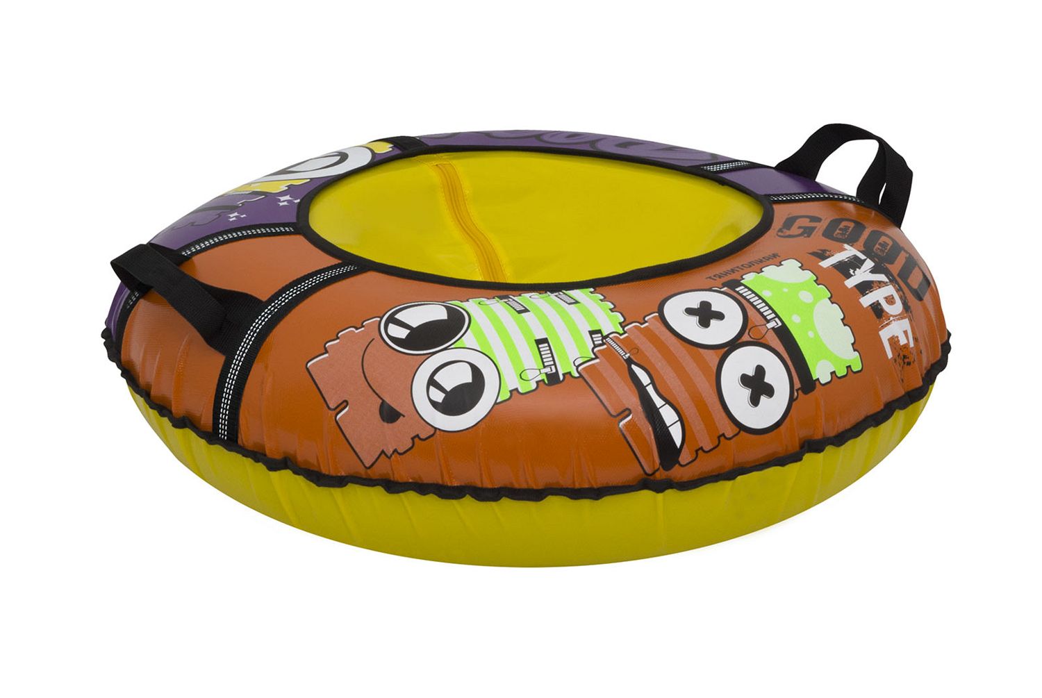 Размер тюбинга составляет 83 см, этот размер позволяет кататься на нём детям ростом до 110 см. Данный тюбинг выдерживает вес до 50 кг