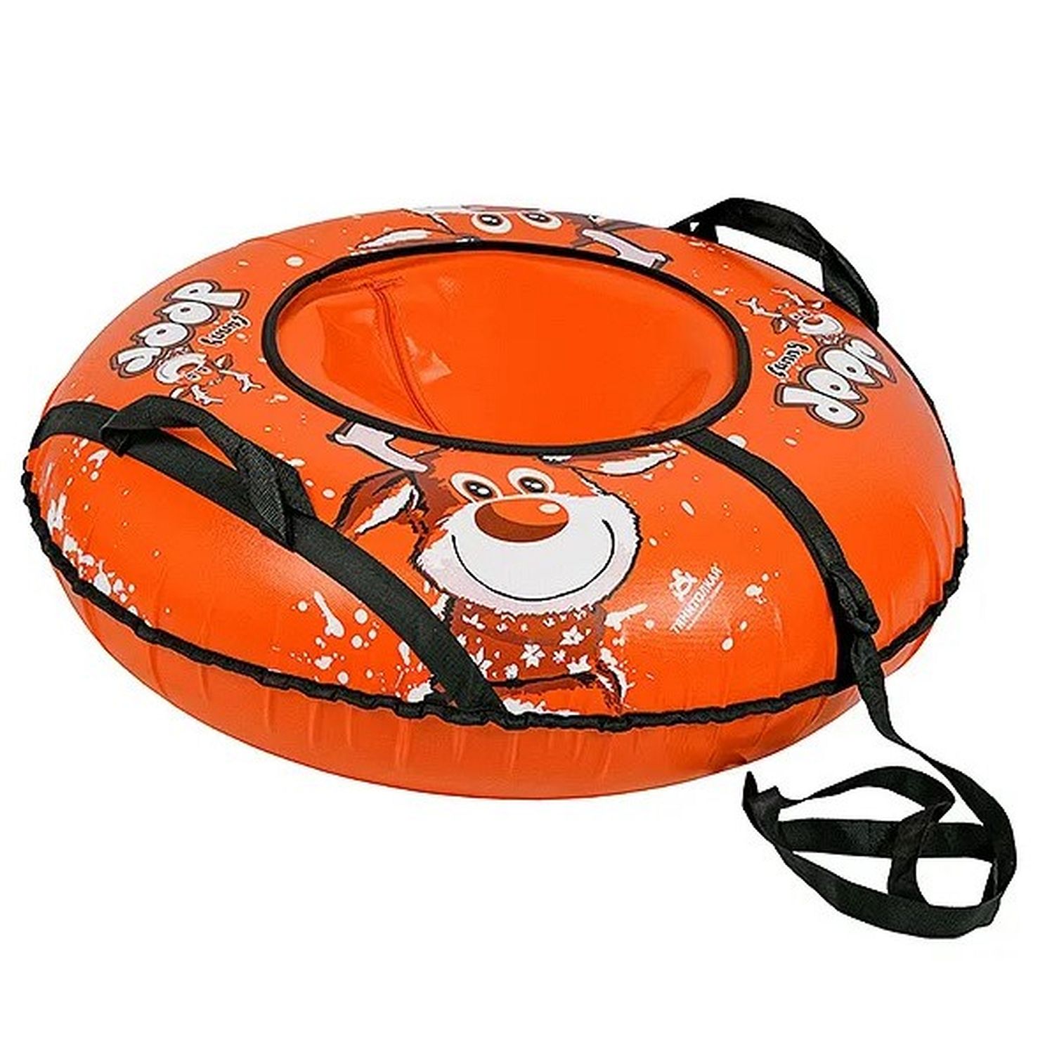 Размер тюбинга составляет 83 см, этот размер позволяет кататься на нём детям ростом до 150 см. Данный тюбинг выдерживает вес до 50 кг.