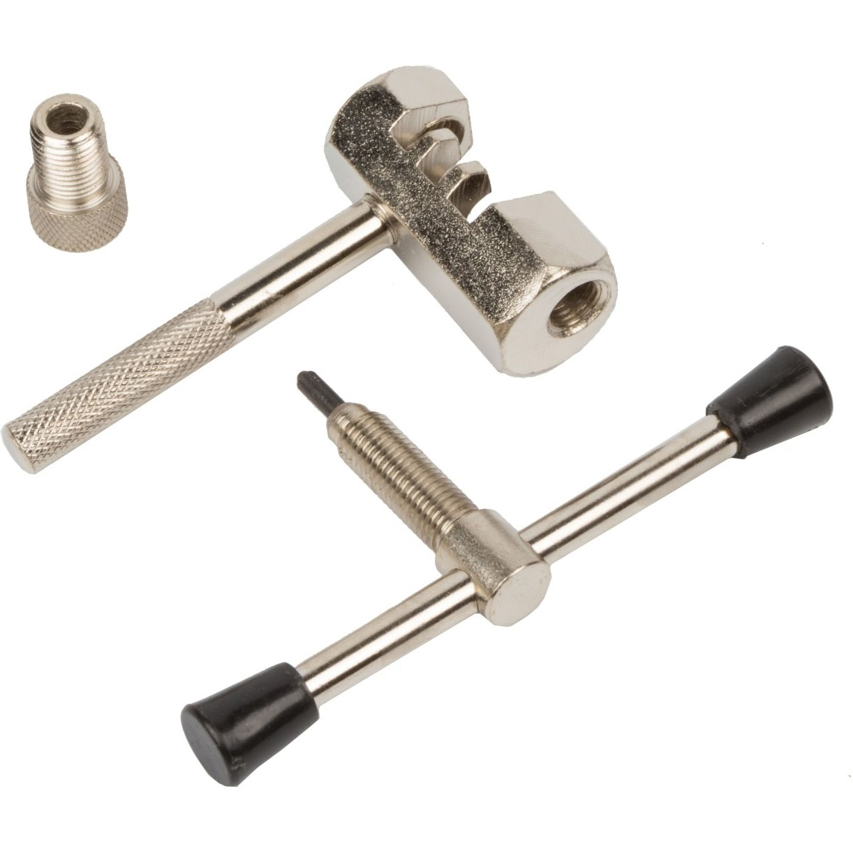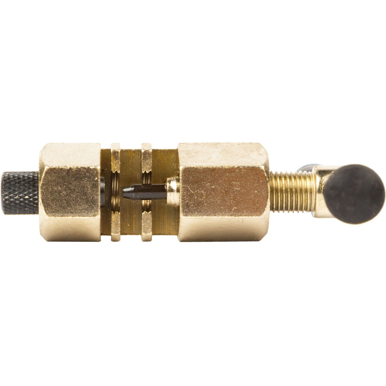 Изготовлена из легированной стали, отличается высокой прочностью и устойчивостью к износу. Оснащена поджимом (фиксатором положения цепи), который упрощает работу и позволяет аккуратно и точно выдавливать пины без риска повредить звенья. Эргономичная форма инструмента обеспечивает надёжный хват и комфорт при использовании.